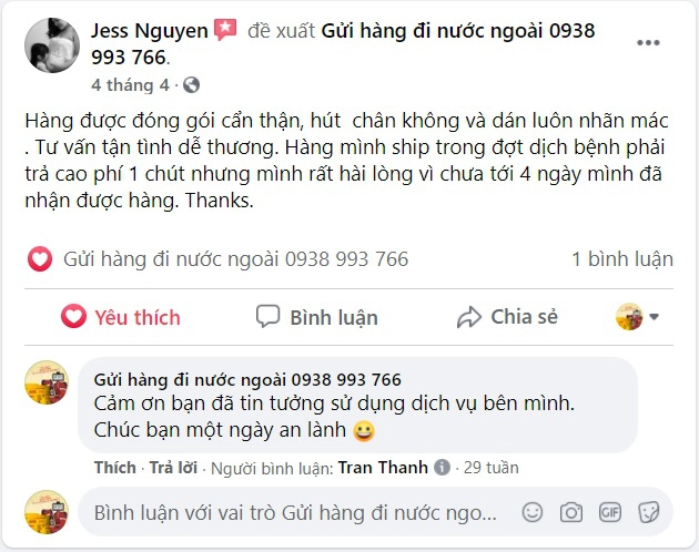 Phản hồi của khách hàng về dịch vụ gửi hàng đi Mỹ của Nasa Express
